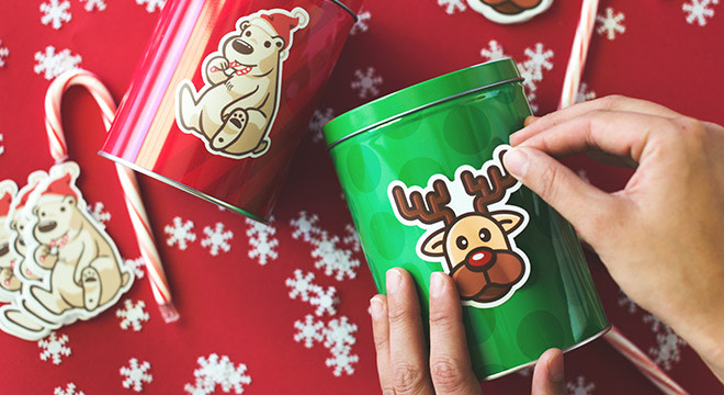 Custom Christmas stickers add sparkle to your holiday season. Add colorful stickers to your merchandise to make it stand out. Use Christmas stickers as party decorations, to seal envelopes, or as stocking stuffers. Our vivid, high-quality stickers come in any shape or size, for a holiday that’s one-of-a-kind.
